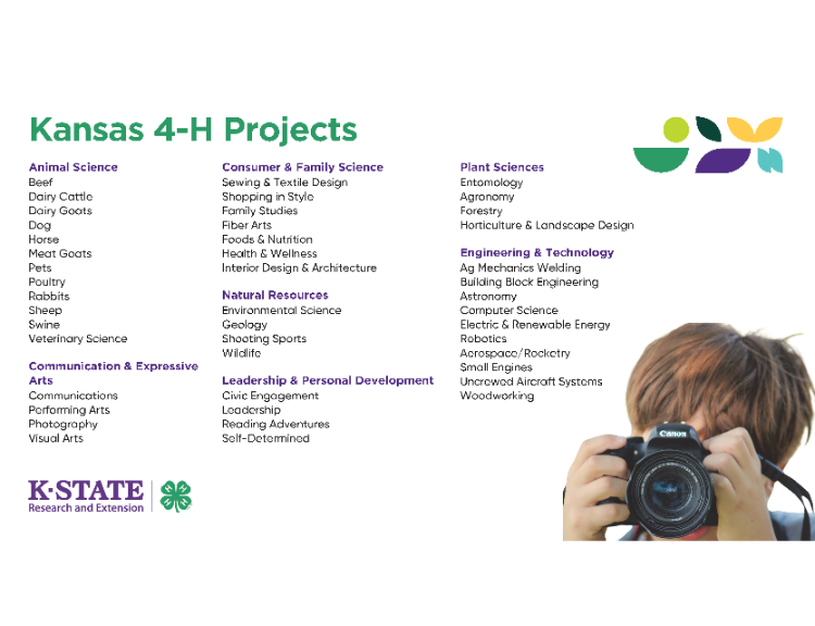 Visit the Kansas 4-H website to learn more about program offerings, activities and opportunities available to you. Kansas 4-H Website